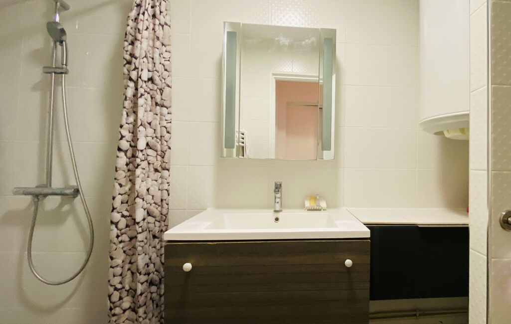 Cet appartement traversant séduit par son séjour lumineux ouvert au Sud sur la terrasse et le jardin, sa cuisine moderne équipée, ainsi que ses deux chambres confortables et sa salle de douche élégante.