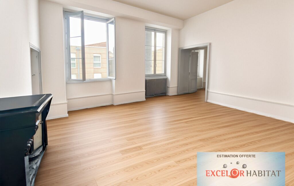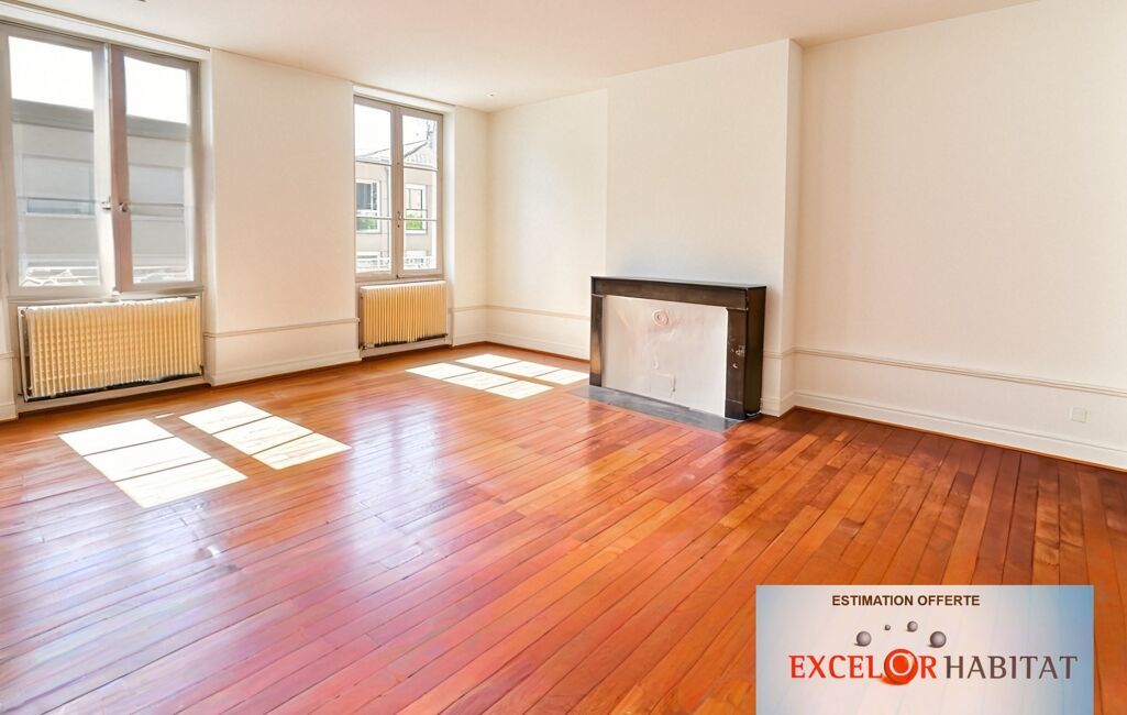 APPARTEMENT DE CARACTERE 3 CHAMBRES BUREAU CAVE Mâcon - Hypercentre Appartement de caractère - Grands volumes - Potentiel d'aménagement.Situé en plein cœur de Mâcon, dans une impasse discrète offrant un calme absolu, cet appartement de caractère de 120 m² séduira les amateurs d'authenticité et d'espace.Vous serez charmé par ses beaux volumes, sa luminosité (exposition Sud) et son cachet ancien à sublimer : moulures, hauteurs sous plafond, parquet… tout y est pour créer un lieu de vie unique à votre image.Il se compose d'un vaste séjour/salle à manger, d'une cuisine indépendante, de trois chambres, d'un bureau, d'une salle de bains et de WC séparés.