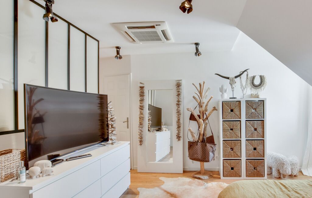 La maison comporte également 2 salles de bain, la cuisine est équipée et ouverte sur le séjour.
