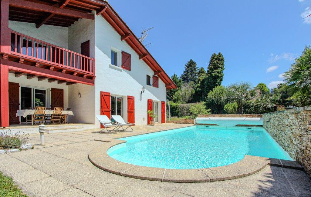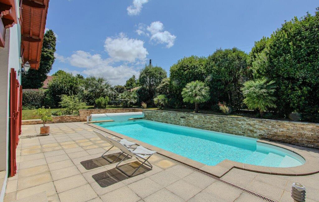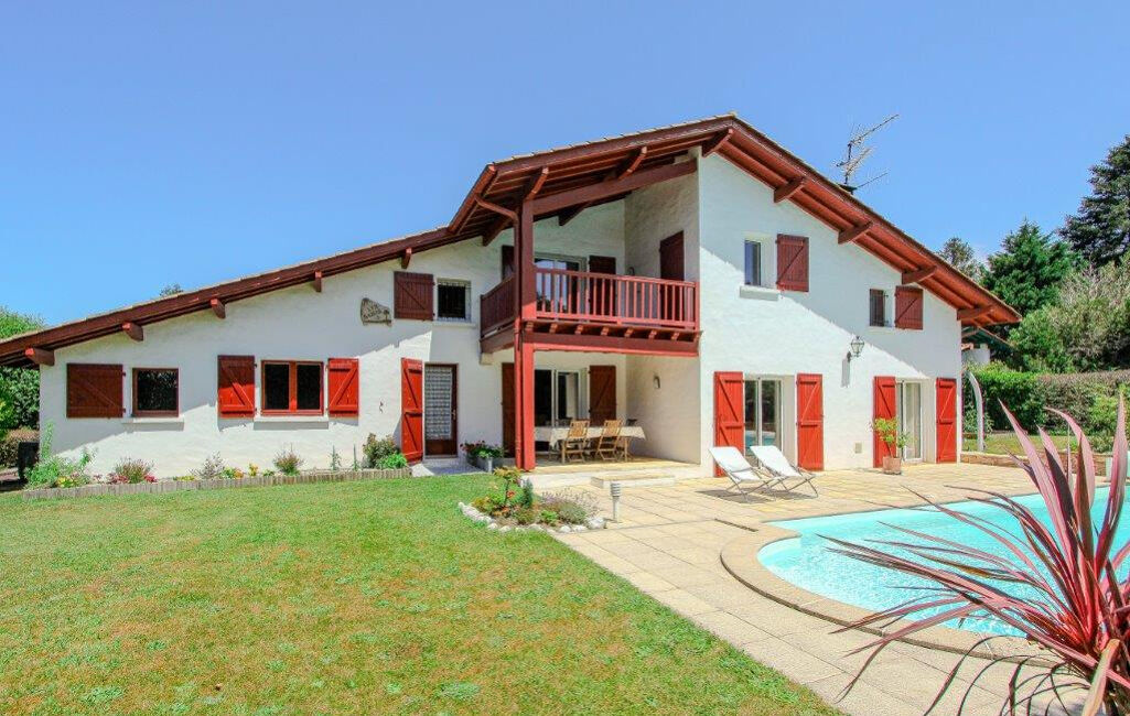 Entre Biarritz et Arcangues à quelques minutes du centre-ville de Biarritz, belle Villa d'environ 200 m², exposée Sud avec piscine sur son parc de 1160 m².
