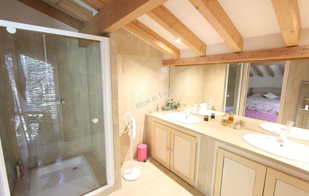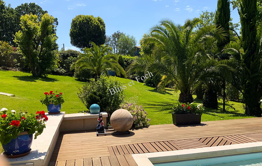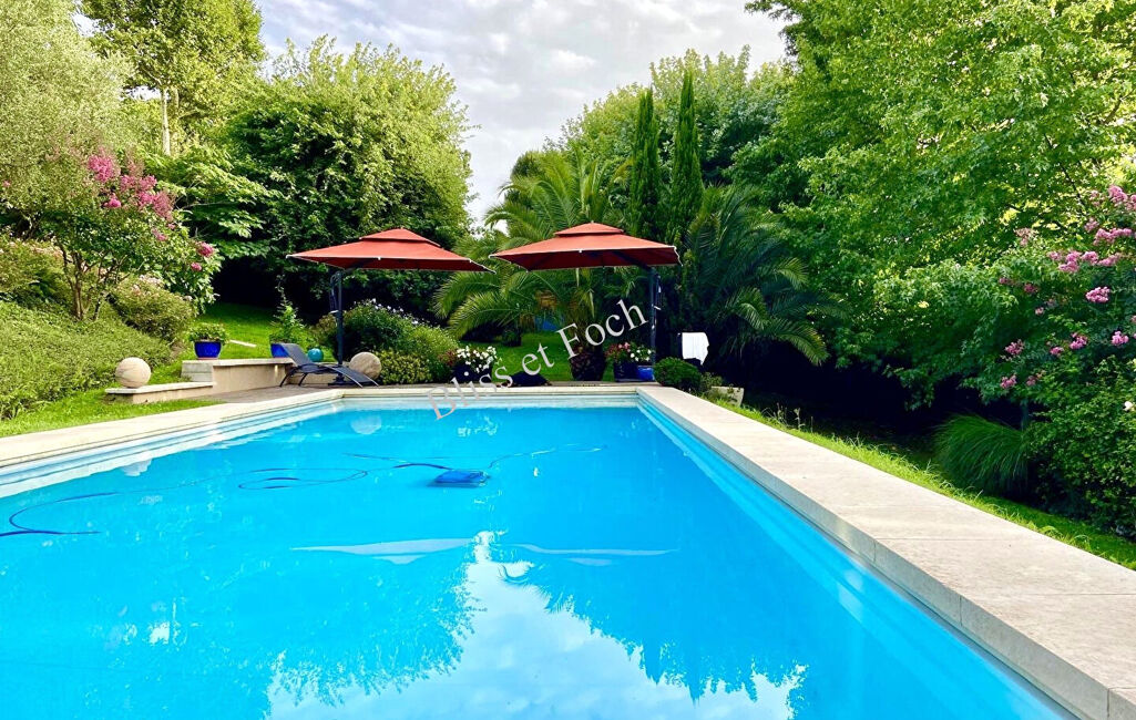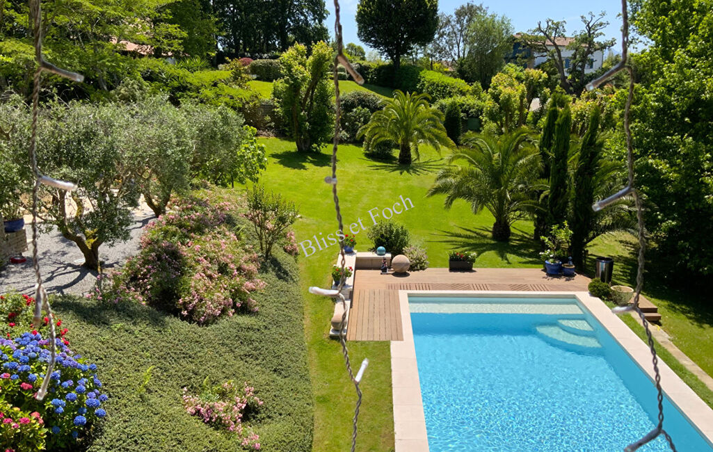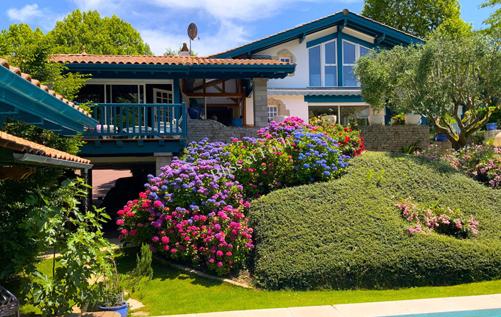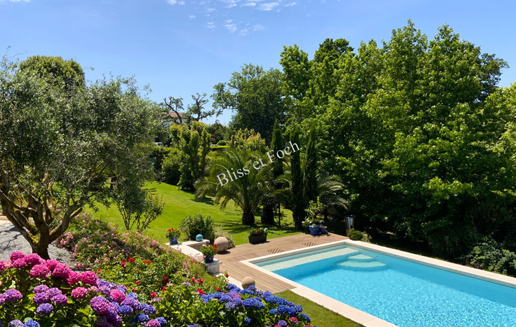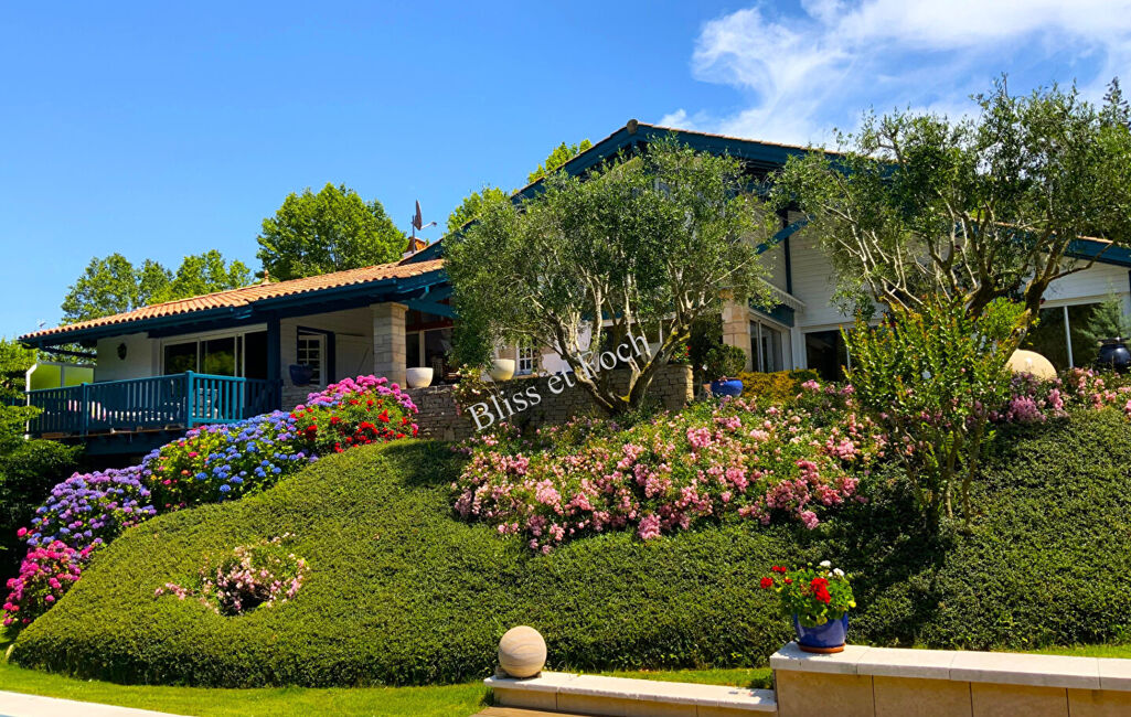 À proximité immédiate du Golf d'Arcangues, et dans une impasse au calme, très belle villa lumineuse de 290 m² avec un bungalow sur un magnifique terrain arboré de 2 430 m².