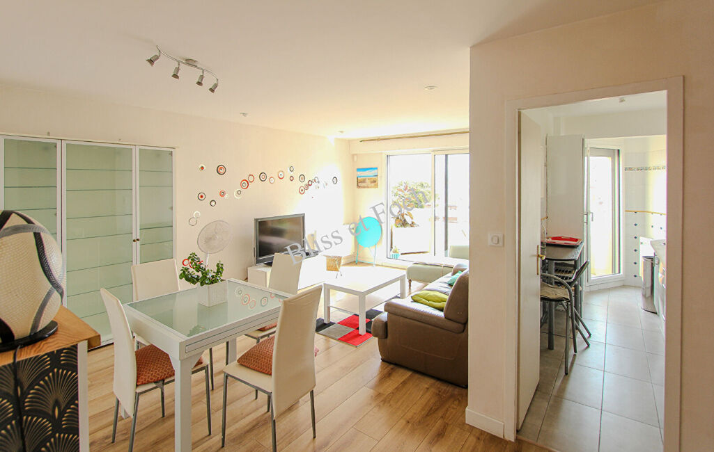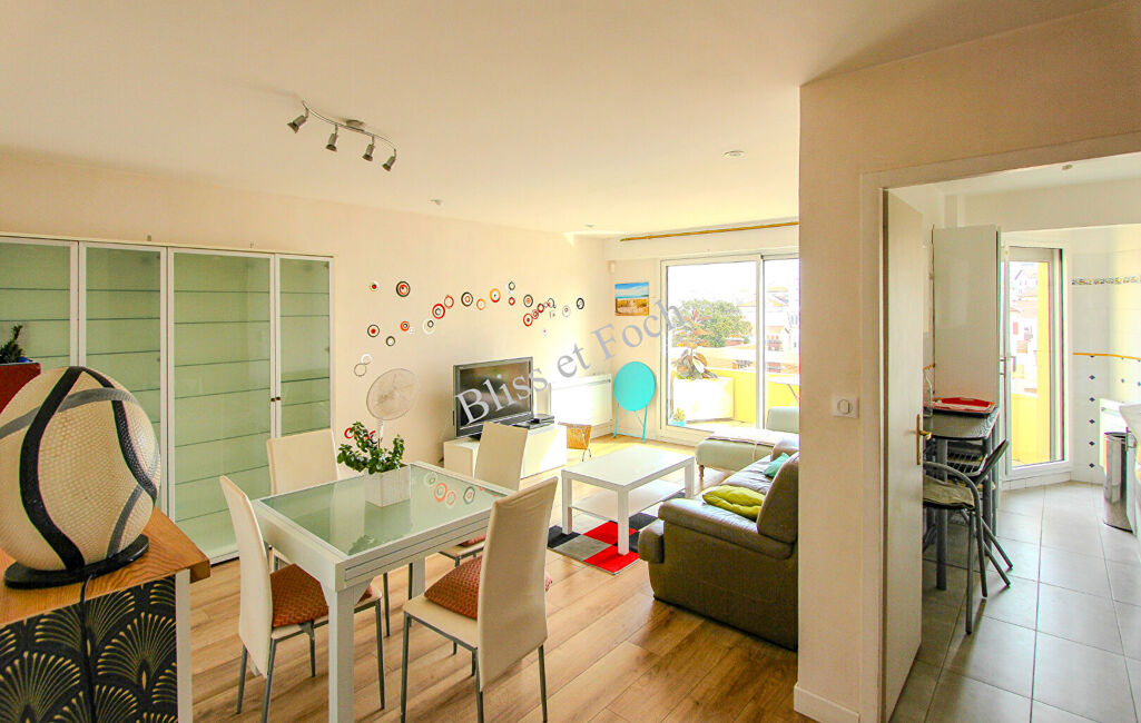 Emplacement idéal pour ce très bel appartement traversant de 67,65 m² situé en étage élevé, à proximité immédiate à pied des commerces de la place Clemenceau et de la plage.