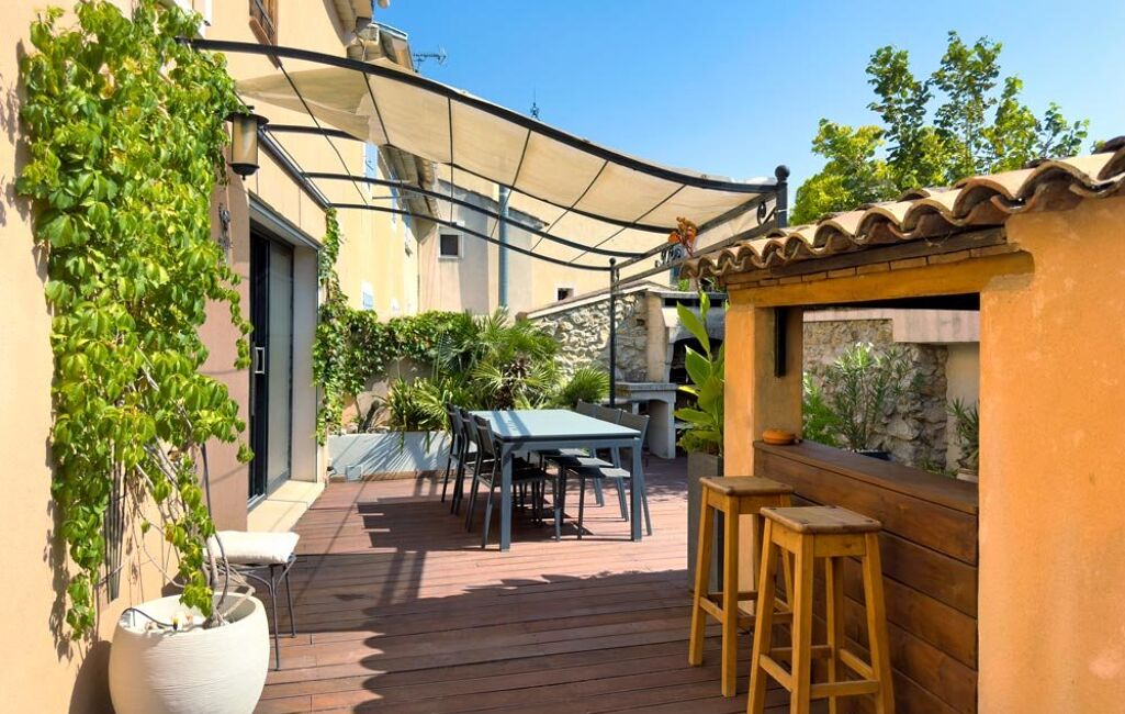 Roquevaire, quartier Pont de l'Étoile, l'agence Casaloft vous invite à découvrir une maison de village pleine de charme, avec terrasse et garage, où authenticité et confort moderne s'unissent pour offrir un cadre de vie unique. Derrière sa façade discrète, cette demeure entièrement rénovée de 175 m² habitables cache de très beaux volumes et de nombreux espaces pensés pour la convivialité comme pour l'intimité. Répartie sur 3 niveaux, elle séduit par ses volumes généreux, son caractère et son confort moderne, dans un environnement paisible et recherché. Au rez-de-chaussée, un vaste bureau de 22 m² vous accueille, parfait pour le télétravail ou une activité indépendante. Vous y trouverez également un grand dressing, une buanderie, un cellier, une salle de sport, ainsi qu'une salle de bains avec douche et baignoire. Le tout complété par un grand garage et un local technique. Au premier étage, le cœur de la maison : une pièce de vie chaleureuse de 58 m² où la cuisine haut de gamme s'ouvre sur un séjour lumineux. Poussez la baie vitrée, et vous découvrez une superbe terrasse de 50 m² en bois rouge du Brésil, avec salon et cuisine d'été couverts, un barbecue et même une douche extérieure. Un véritable coin de paradis pour partager de bons repas en famille ou entre amis, et savourer les longues soirées d'été. Une salle d'eau avec wc complète ce niveau. À l'étage supérieur, deux grandes chambres mansardées (20 m² et 22 m²), dont une avec wc et point d'eau, offrent une vue imprenable sur la campagne environnante et les collines du parc naturel régional de la Sainte-Baume. Côté confort, rien ne manque : poutres apparentes, parquet en chêne massif, poêle à granulés, climatisation réversible, cave tempérée, arrosage automatique, adoucisseur d'eau, VMC, cuisine d'été, BBQ Chaque détail a été pensé pour faciliter la vie au quotidien tout en conservant le cachet de l'ancien. Ici, tout invite à la détente et au bien-être, entre douceur de vivre provençale et modernité.