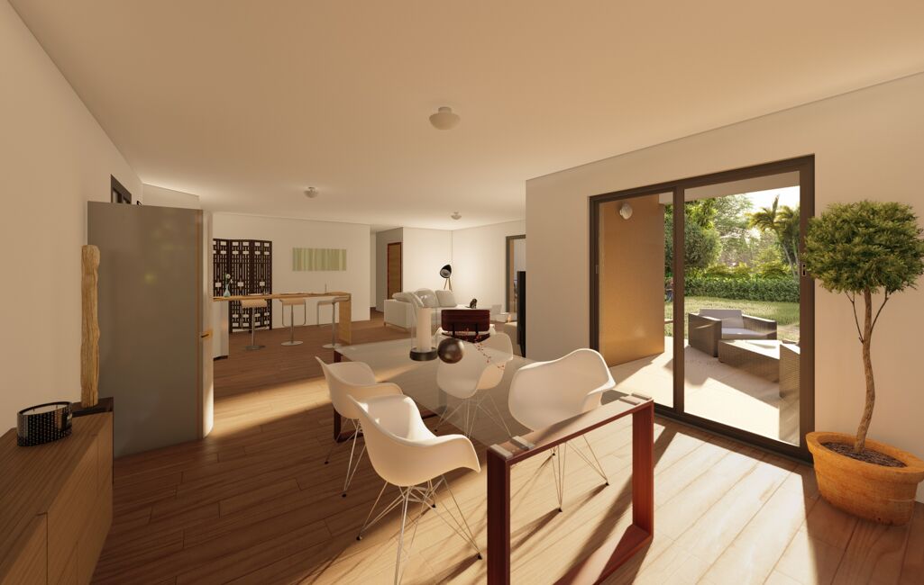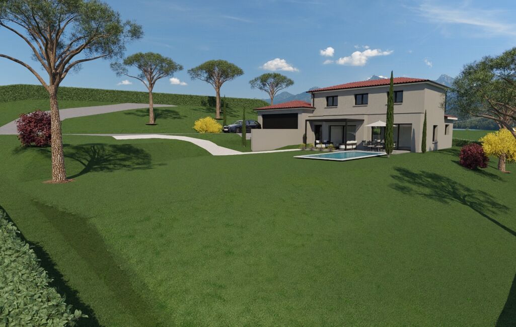 Nous vous proposons ce projet de villa RE2020 d'une surface de 125m² + 34 m² de garage, comprenant au rdc une spacieuse et lumineuse pièce de vie en triple exposition (Est/Nord/ouest) avec vue panoramique, cuisine ouverte type ilot central et son cellier, une entrée intimiste avec placard, un wc indépendant, une suite parentale avec salle d'eau et dressing.