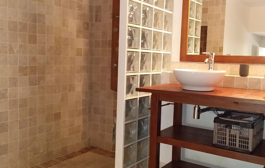 1 Chambre, 1 superbe salle de bains, double vasque posée sur meuble d'époque, baignoire sur pied, douche, WC séparé.