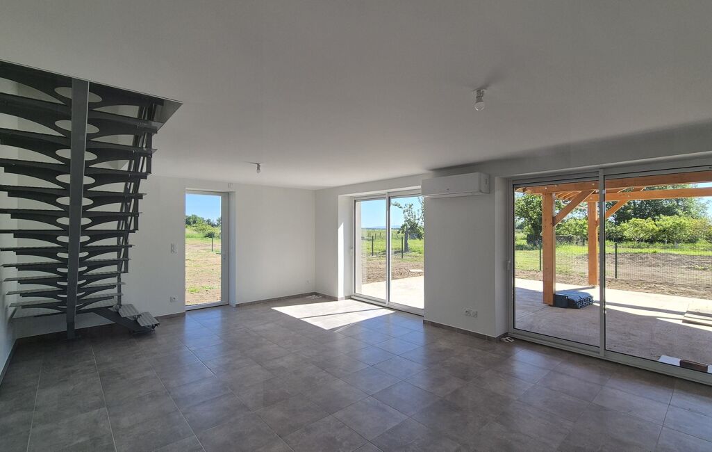 Spacieux salon séjour lumineux avec baie vitrée donnant sur grande terrasse