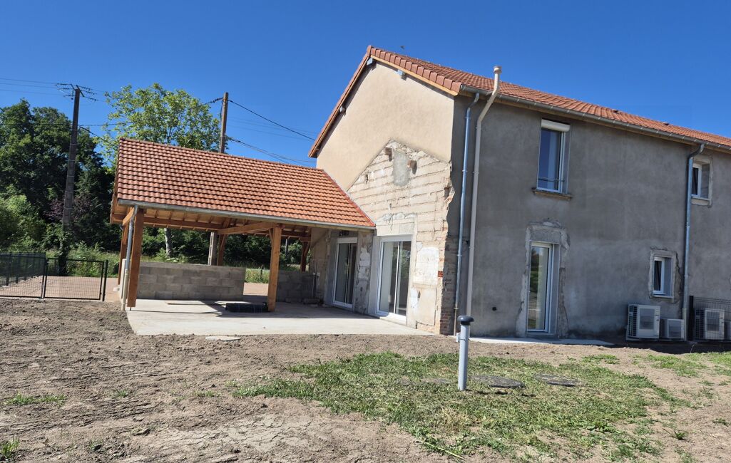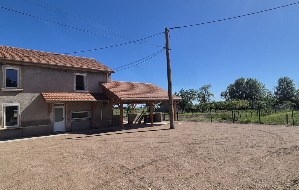 L’Agence D L' Esprit immobilier vous propose à la location une maison entièrement rénovée à Pouilly-les-Nonains à 14 min de Roanne , secteur calme , campagne , maison mitoyenne d’un côté, entièrement refaite à neuf,