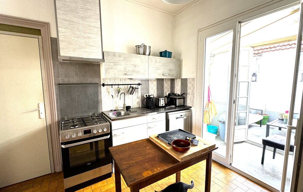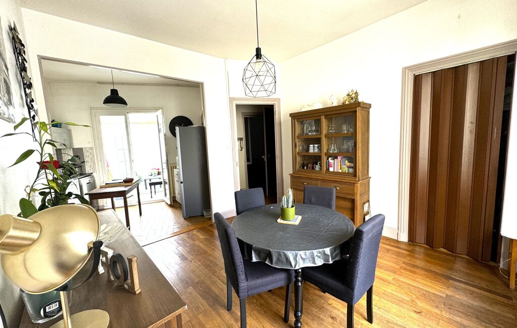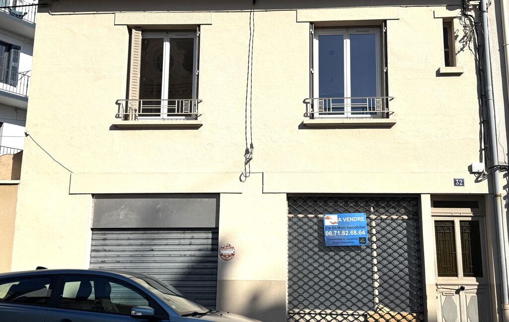 Maison de ville R+1 d'environ 90 M² habitable Rez de chaussé hall, 1 pièce pouvant faire 1 chambre, 1 salle d'eau avec wc, 1 buanderie et un garage. Étage :,2 chambres, séjour , coin cuisine meublé non-équipée , salle de bain avec baignoire , wc, 1 petite terrasse sans vis à vis, possible de faire un commerce en rez de chaussé.