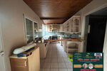 A l'étage 3 chambres et un grenier. Le tout sur terrain de 1251 m² clôturé avec garage et remises.