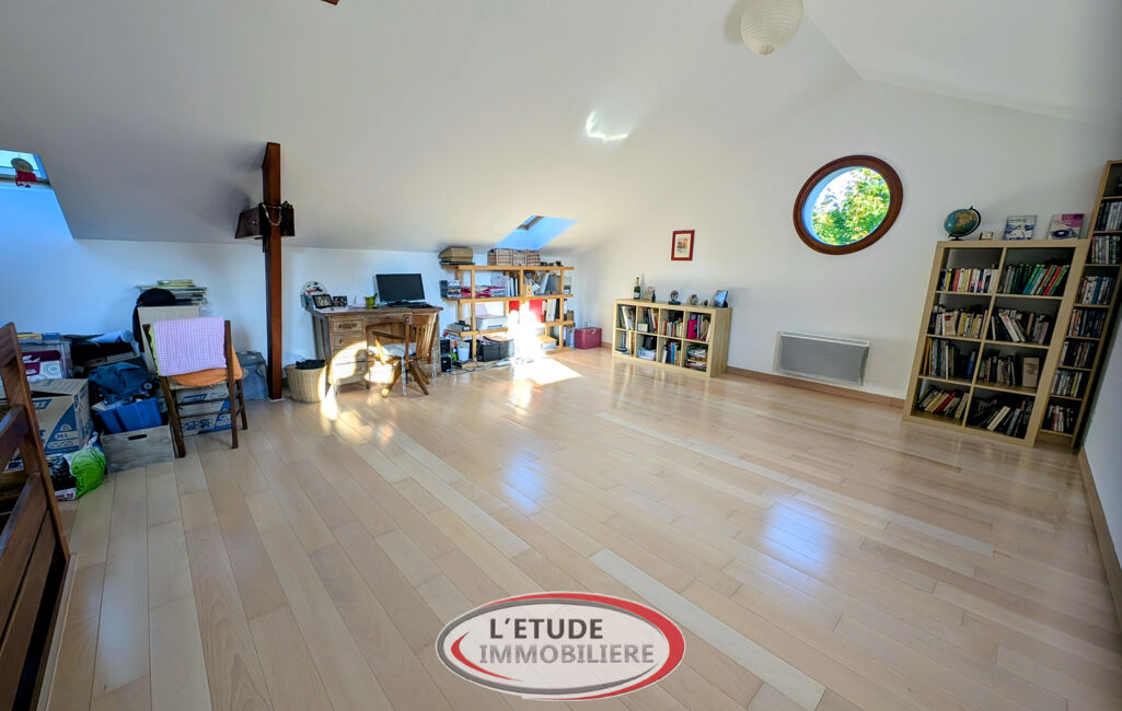 Vous apprécierez ses 5 chambres dont deux suites avec salle d'eau privative, ainsi que deux mezzanines dont une spacieuse de 32 m2 au sol, idéale pour un espace bureau, détente ou jeux. Le salon parqueté avec cheminée ouverte et la cuisine équipée avec frigo américain offrent un cadre convivial et chaleureux.