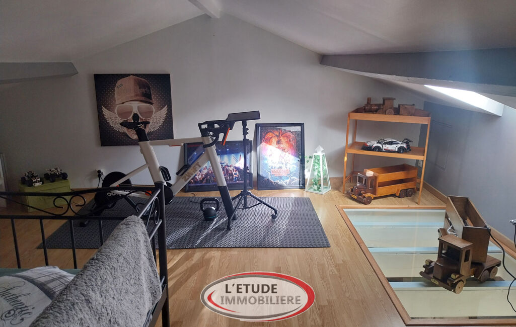 D'un côté (maison de 1860) le bien possède une entrée avec un WC séparé, une suite parentale (avec dressing et salle de bains attenants), une cuisine aménagée et équipée récemment, une deuxième chambre avec placard. Au dessus de cette partie ancienne se trouve un bureau et une salle jeux.