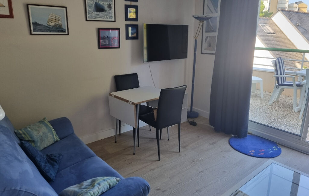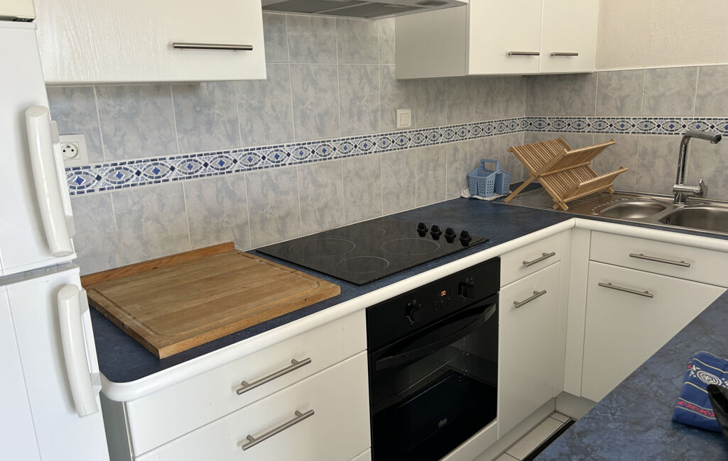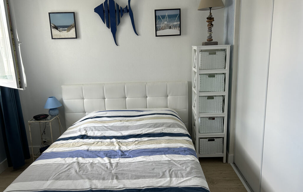 T2 dernier étage sans ascenseur à 350m de la mer comprenant entrée avec placard. Salon séjour ouvert sur cuisine aménagée et équipée.