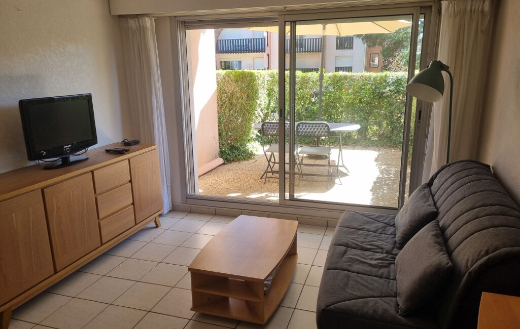 Entrée cabine, salon séjour avec coin cuisine aménagé et équipé.