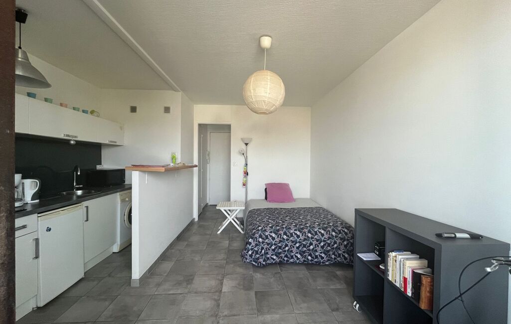 Description : Ce charmant studio est situé dans un quartier calme et résidentiel, à proximité des commerces, des restaurants et des transports en commun. Il offre un espace de vie bien agencé, bénéficiant d'une luminosité naturelle agréable tout au long de la journée avec sa vue panoramique.