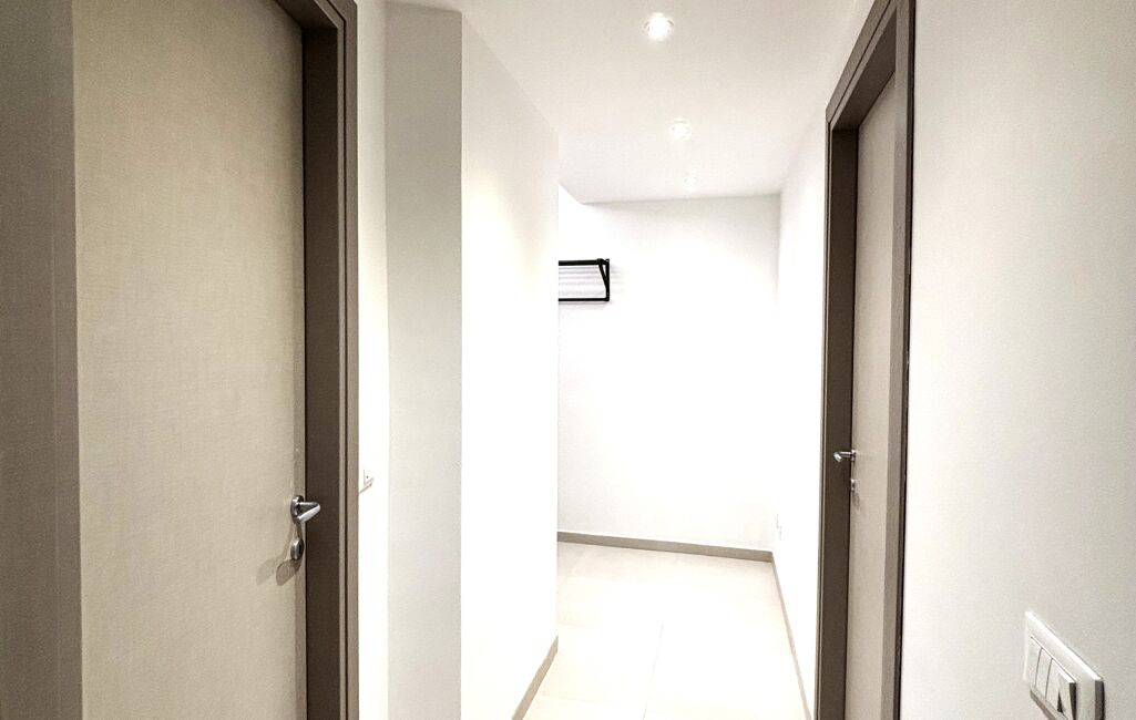 L'appartement vient d'être entièrement remeublé à neuf et se compose d'une entrée avec placard, d'un séjour sur d'angle avec cuisine américaine équipée, d'une salle d'eau avec grande cabine de douche