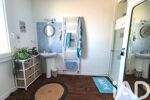 Au rez-de-chaussée se trouve une pièce de vie lumineuse avec cuisine ouverte, un petit couloir avec rangements qui dessert une salle d'eau spacieuse ainsi que des WC.