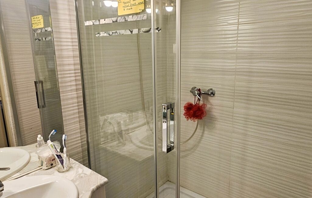 Une salle d'eau, équipé d'une grande douche avec porte coulissante en verre, vient compléter cet espace de vie. Profitez également d'un charmant balcon de 1.6m² orienté sud-est, idéal pour profiter des rayons de soleil et prendre un café en plein air avec une vue imprenable sur les montagnes environnantes..