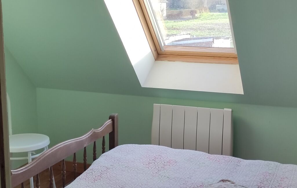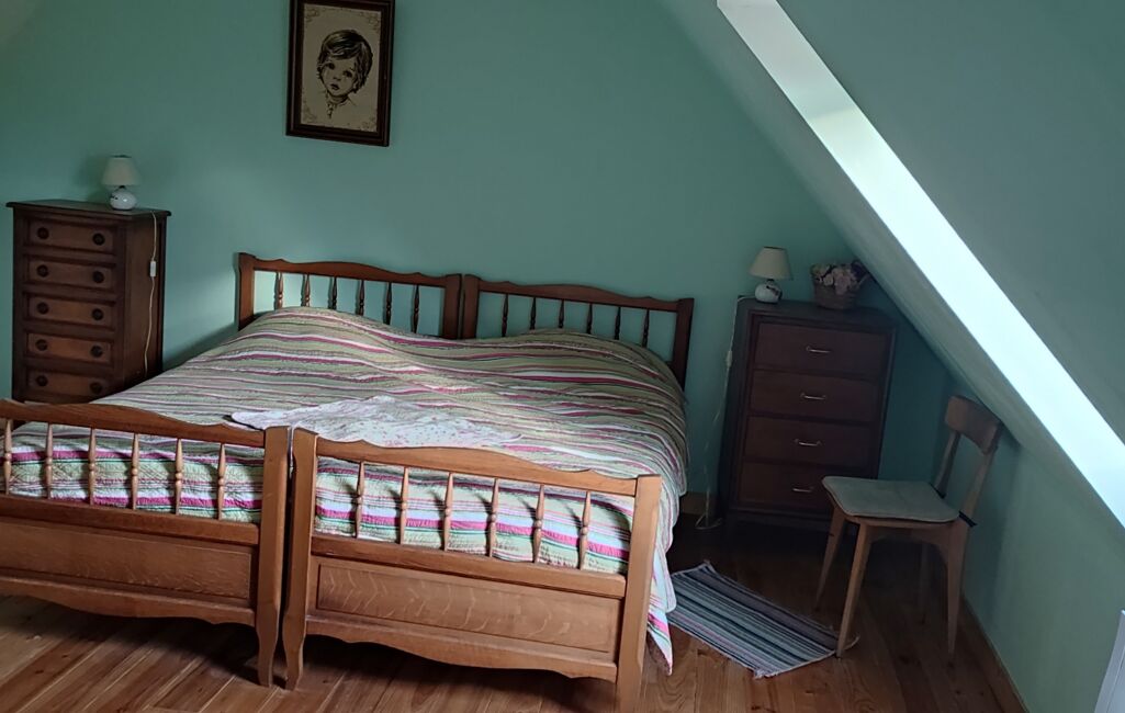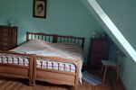 A l'étage, chambre, bureau, salle de bain et toilette.