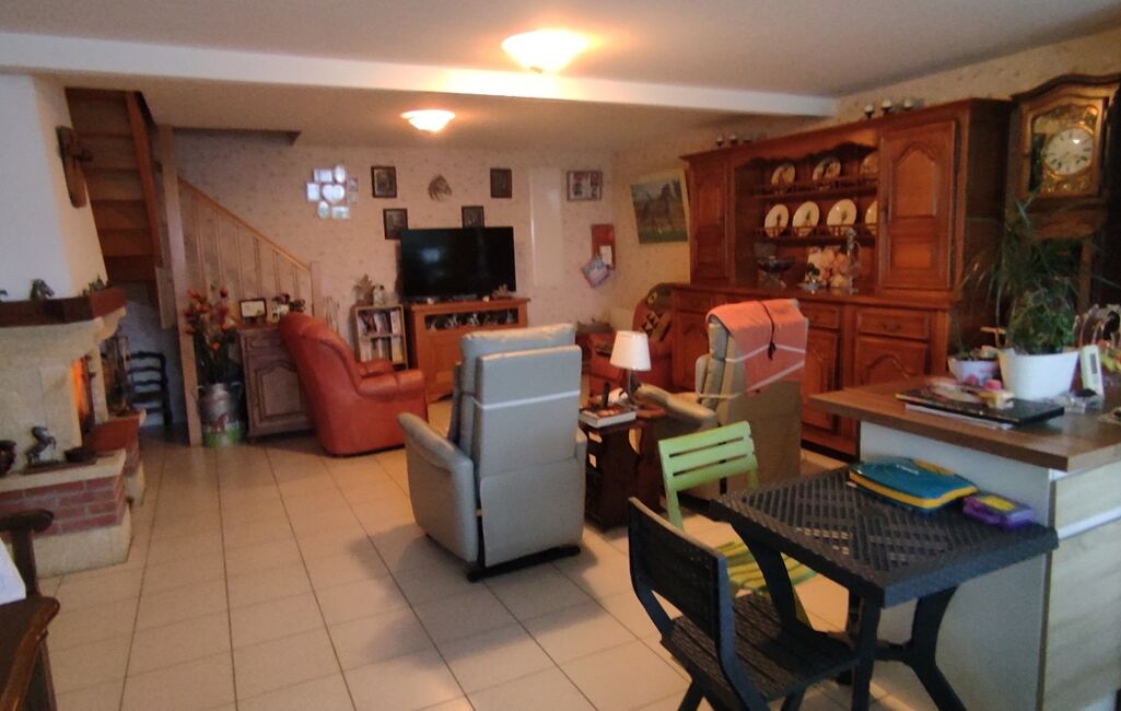 Au rez de chaussée, belle pièce à vivre avec cuisine aménagée et cheminée insert, chambre, salle d'eau, cellier, arrière cuisine et toilette.