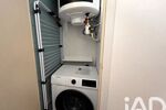 Salle de douche avec WC et meuble vasque. Placard avec machine à laver.
