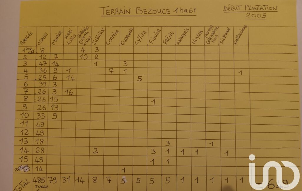 À vendre : superbe terrain agricole de 16 110 m² composé de 649 arbres de bois d’essences nobles, plantés il y a plus de 20 ans : osage, mûrier, kaki lotus, orme, frêne, noyer, figuier, et bien d’autres encore. Bois d'exploitation très spécialisé pour flèches ( tir à l'arc) et archets de musique ...