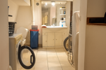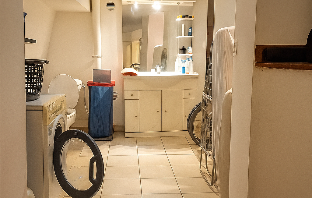 - Au rez-de-chaussée, vous trouverez un espace chambre avec pièce d'eau.
