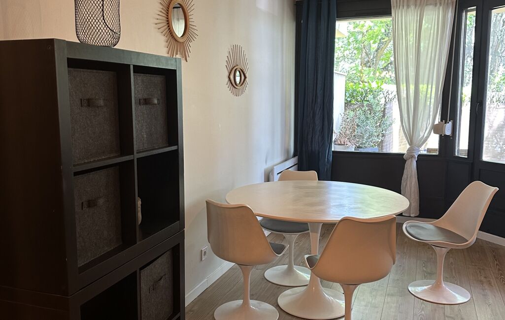 Ce T2 entièrement meublé et équipé, comprend une chambre avec un lit de 140 cm, une cuisine ouverte disposant d'un four, de plaques de cuisson, un micro-ondes, un lave-vaisselle, un réfrigérateur-congélateur,une machine à café,de la vaisselle…Le salon est aménagé avec une télévision, un canapé avec méridienne, une table à manger, une table basse. Ce bien est complèté par de nombreux rangements et un lave linge.