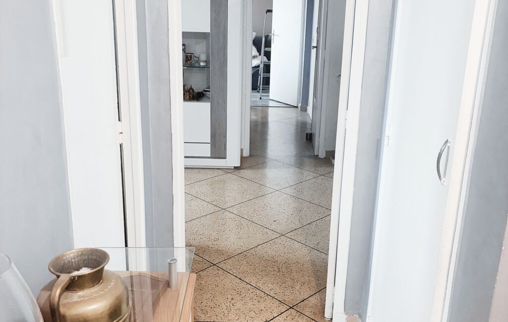 Celui-ci est composé d'une entrée, une salle de bain, un wc séparé, une cuisiné séparée, un cellier, une loggia, deux chambres dont l'une donne sur un balcon.