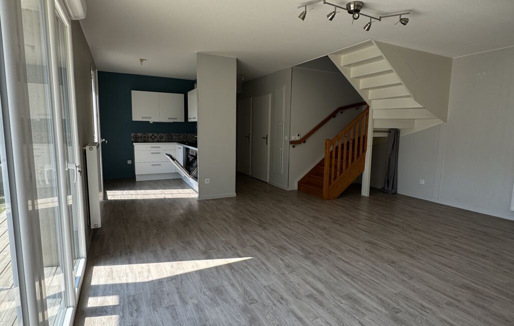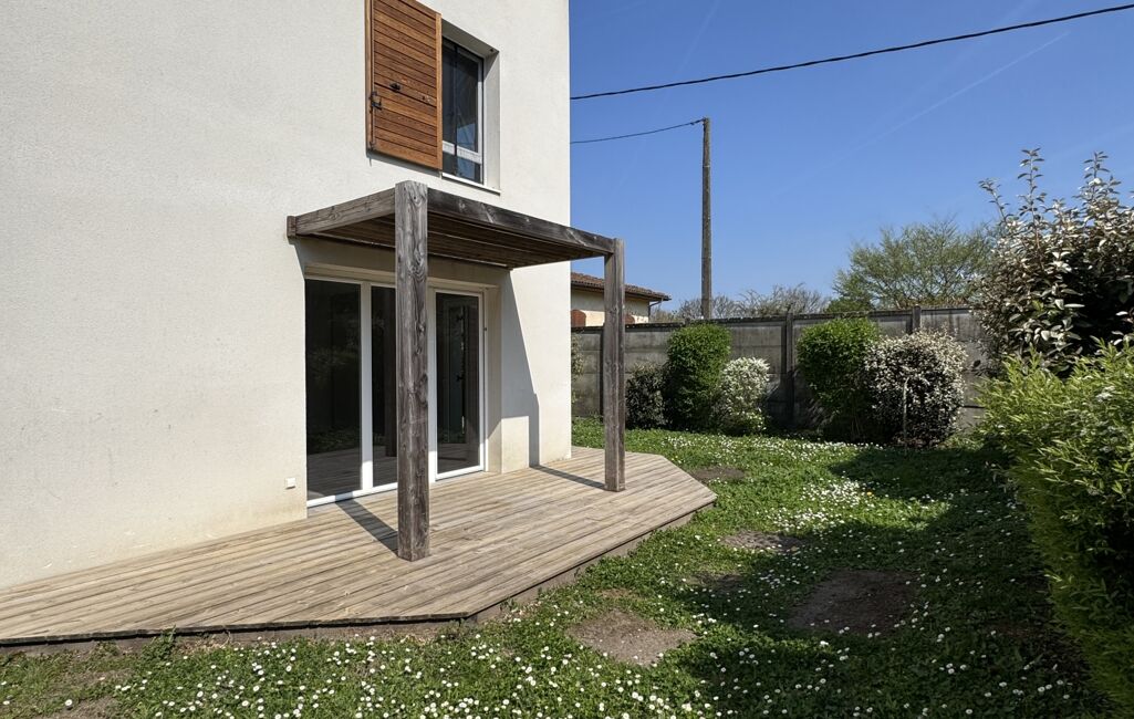 A louer maison mitoyenne dans résidence sécurisée , composée de 3 chambres à l'étage avec jardin privatif de 100m2 et une place de parking .
