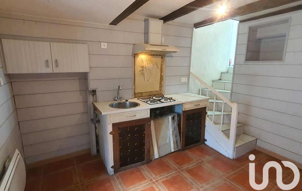Quelques marches permettent d’accéder en contre-bas à la charmante petite cuisine. Celle-ci ouvre sur une cour close de 11 m² environ, avec un petit cabanon de jardin. Un portillon donne accès à l’agréable bourg d’antan, avec ses ruelles typiques, pentues, étroites et pleines de charmes.