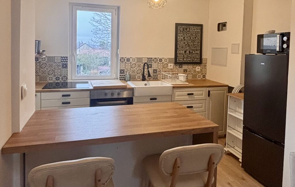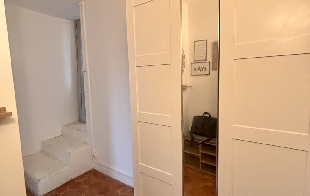 iad France - Claire Cheron vous propose: Appartement 3 pièces meublé en duplex plein de charme alliant authenticité et praticité comprenant : entrée équipée avec dressing, palier, séjour avec cuisine ouverte aménagée et équipée, 2 chambres avec dressing, salle d'eau avec WC.