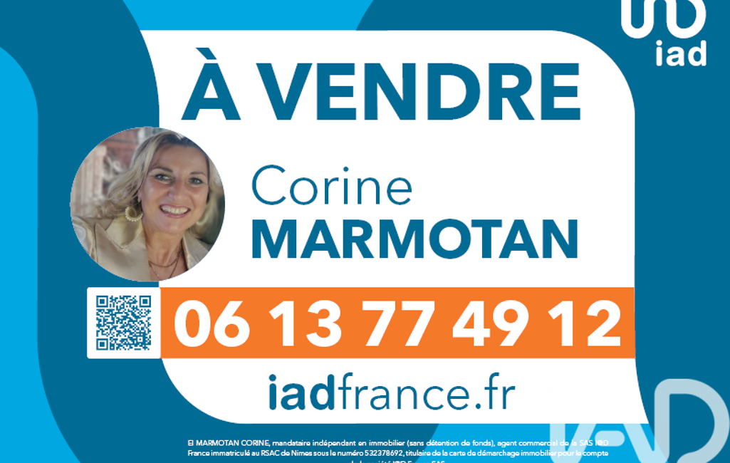 La présente annonce immobilière a été rédigée sous la responsabilité éditoriale de Mme Corine Marmotan mandataire indépendant en immobilier (sans détention de fonds), agent commercial de la SAS I@D France immatriculé au RSAC de NIMES sous le numéro 532378692, titulaire de la carte de démarchage immobilier pour le compte de la société I@D France SAS.