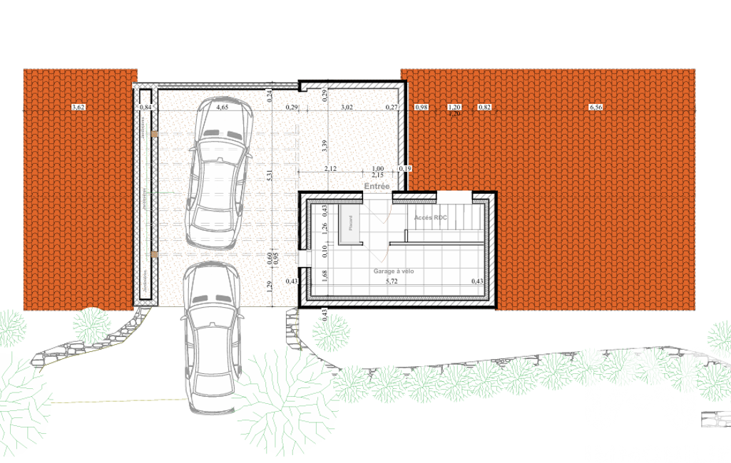 Le PERMIS de CONSTRUIRE porte sur une MAISON de 5 PIÈCES, d'une SURFACE HABITABLE de 150m2 environ (140m2 en Rez de jardin + 10m2 en R+1) avec un CARPORT et un GARAGE à VÉLOS.