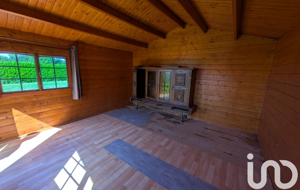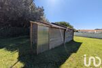 Terrain de 887 m² viabilisé avec cabanon en bois qui est composé de 2 pièces. Une pièce servant de salon et l'autre de cuisine et salle d'eau avec un évier, une douche et WC.