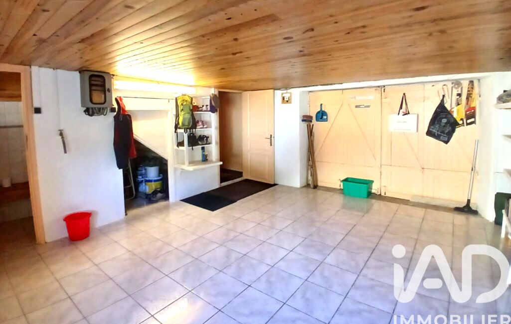 - 1 Garage de 20 m² environ, sol carrelé, murs peints et plafond en lambris, 1 fenêtre