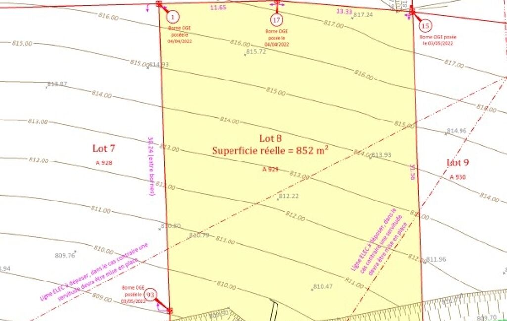 • Superficie terrain : 852 m²