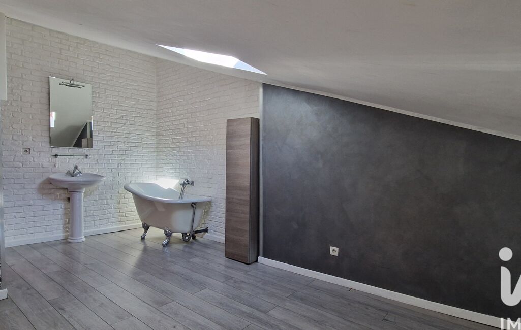 A l'étage: une chambre confortable avec un velux pour la luminosité, un espace dressing séparé, une salle de bain avec une belle baignoire, et des WC séparés complètent ce bien, idéal pour une personne seule ou un couple.