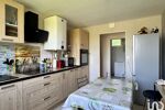 Dès l’entrée, un espace de rangement intégré et un couloir distribuent efficacement l’ensemble des pièces : deux chambres confortables, un cellier pouvant servir de dressing ou de bureau, une salle d’eau, et une cuisine entièrement équipée.