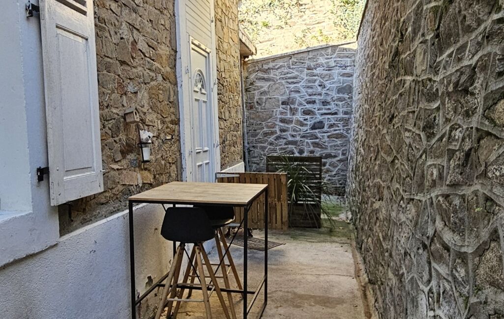L'extérieur de la maison dévoile une façade charmante, typique des maisons de cette époque, tandis que l'intérieur a bénéficié d'une rénovation récente pour allier le charme de l'ancien au confort moderne.