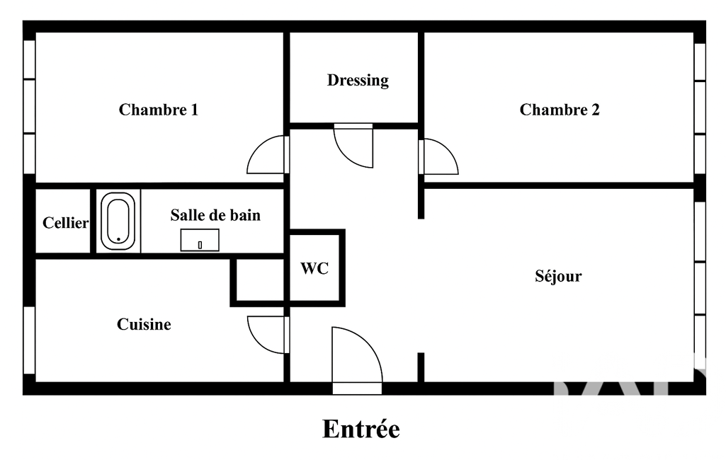 Ce logement traversant et lumineux dispose d'une entrée sur séjour, cuisine avec cellier, salle de bain, 2 chambres avec dressing central. Les wc sont séparés. Stationnement dans la copropriété aisé.
