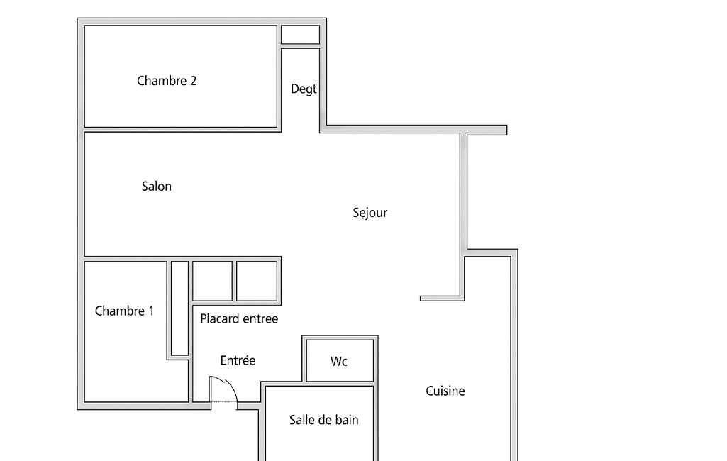 Il se compose actuellement d’un double séjour avec balcon , de deux chambres, d’une salle d’eau, de WC séparés et de rangements pratiques.