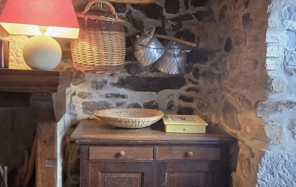 Le sol et les murs en pierre lui confèrent une atmosphère relaxante et agréable que la cheminée, à foyer ouvert, vient chaleureusement compléter.