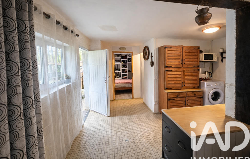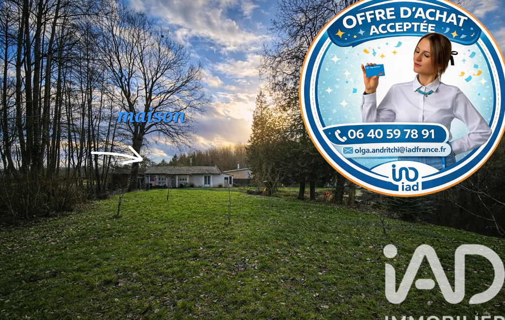 iad France - Olga Andritchi vous propose: Maison de campagne entrée, salon, coin cuisine, salle d'eau et chambre située dans un environnement calme et verdoyant, sur un grand terrain entièrement clos et arboré avec étang privatif.
