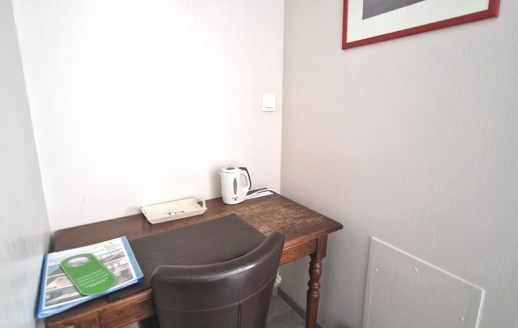 Ici, vous découvrez une des anciennes chambres d'hôtel, au 1er étage, qui représente un appartement type studio de 16m2, en surface au sol, composé d'une pièce de vie spacieuse avec poutres apparentes et plusieurs espaces de rangements. Une salle d'eau avec wc. L'installation d'une cuisine est à prévoir. Ainsi que les installations d'un tableau et de radiateurs électriques.