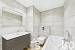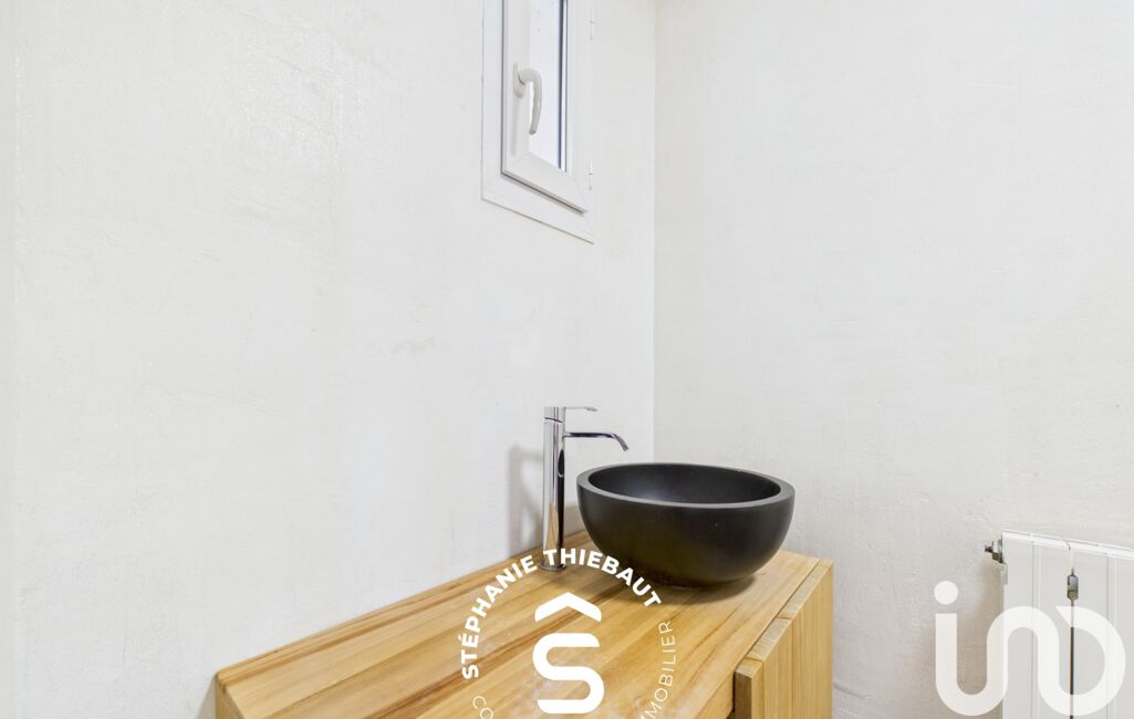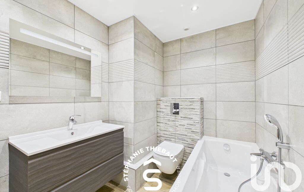 À l’étage, l’espace nuit se compose de trois chambres de plus de 10 m². Vous apprécierez la salle de bains rénovée récemment, équipée d’une baignoire, d’un meuble vasque et d’un WC. Une buanderie avec douche vient compléter cet étage, offrant praticité.