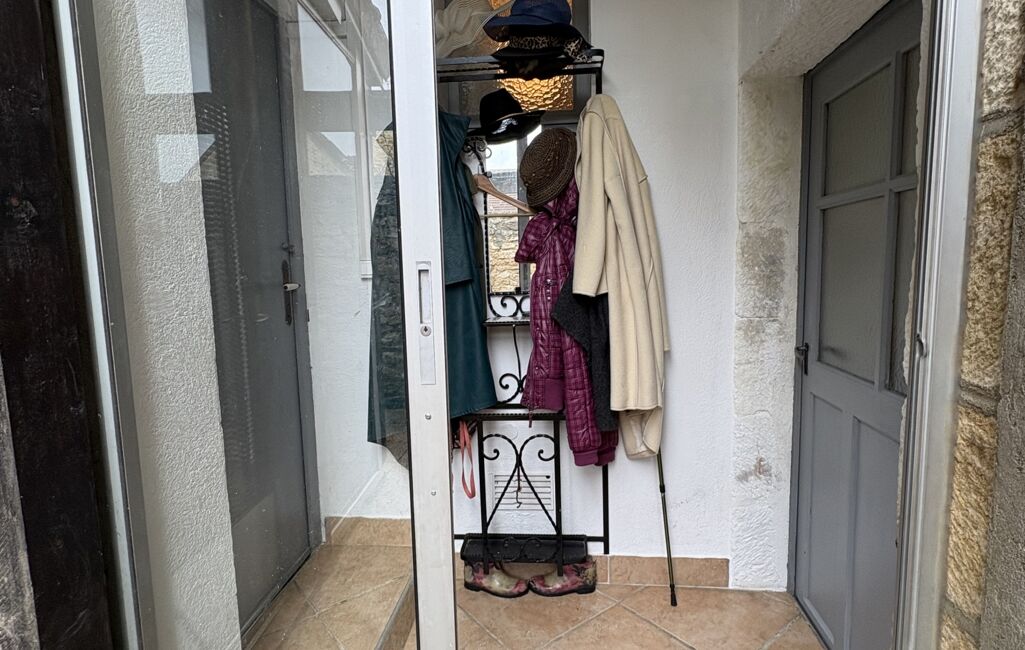 Dans la maison principale, l’entrée dessert une salle de bain ainsi qu’un WC indépendant. La cuisine, située en face de l’entrée, est facilement accessible et conviviale.