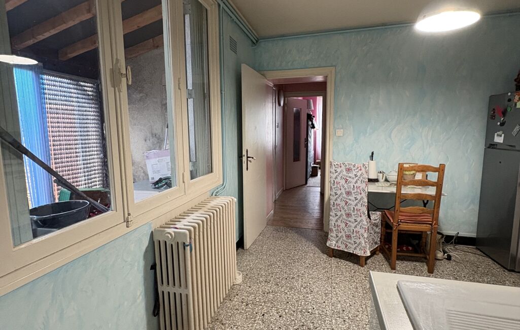 Dès l’entrée, vous êtes accueilli par une véranda, apportant luminosité et charme, avec une vue sur la fenêtre de la cuisine. En franchissant la porte d’entrée, l’agencement est fonctionnel et bien pensé :