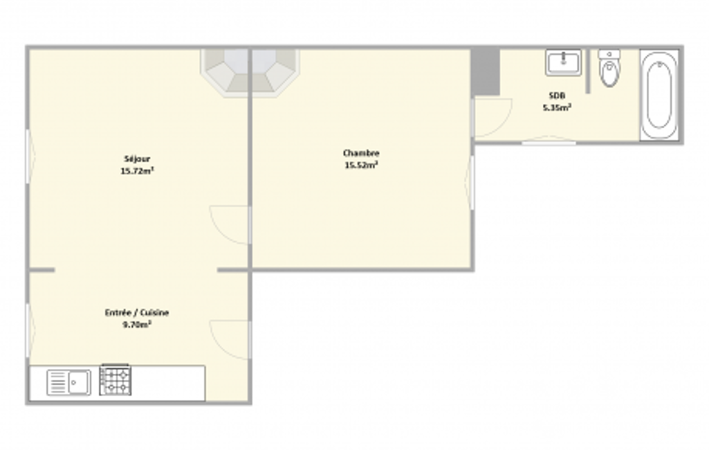Dans une petite copropriété calme et à faibles charges, appartement 2 pièces d’environ 47m² situé au 1er étage sans ascenseur, dans une rue très peu passante.