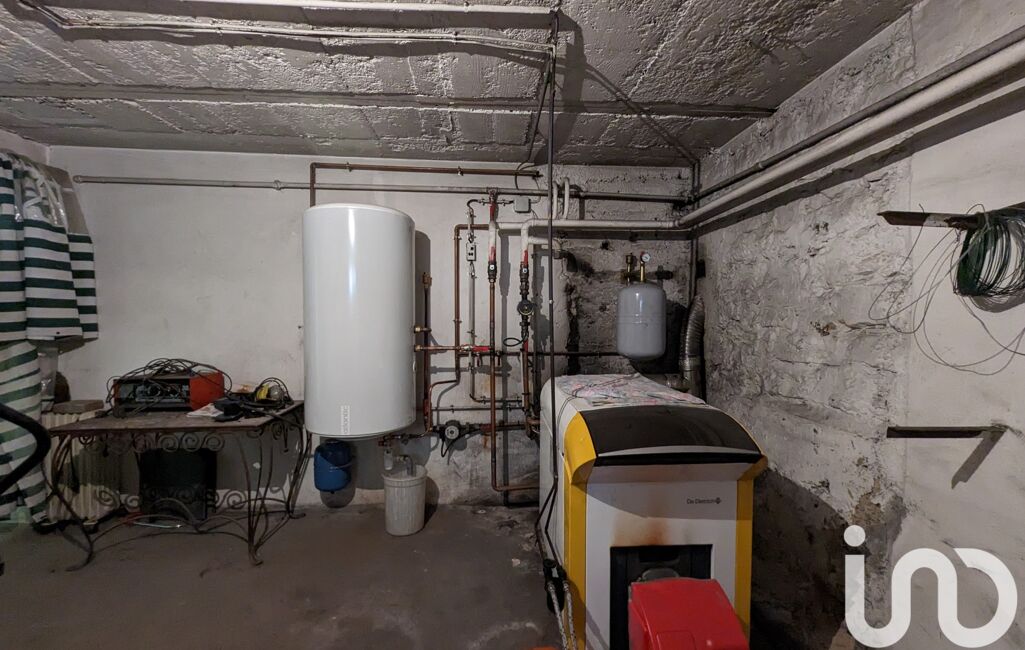 Au rez-de-chaussée, vous trouverez une cuisine, une salle à manger, un salon avec cheminée, un WC ainsi qu'un balcon. À l'étage, la maison dispose de trois chambres et d'une salle de bains. Le sous-sol complet inclut une buanderie, un garage, une cave et une chaufferie alimentée au fioul. À l'extérieur, une cour et un abri de jardin complètent le tout.
