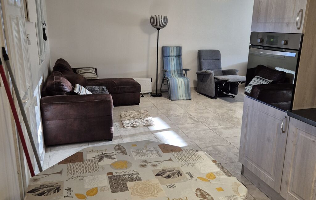 Dès l'entrée, vous serez charmé par le salon lumineux de 23.46m², la cuisine ouverte équipée de 11m², et la chambre confortable de 9.74m². Vous trouverez également une salle d'eau , un WC séparé.